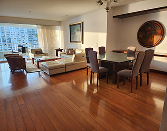 Departamento con vista espectacular al mar, se alquila semiamoblado, consta de dos ascensores directos al dpto., principal y de servicio. Ingreso con recibo, sala comedor, amplia terraza, baño de visita, dormitorio principal con vista al mar, baño incorporado, sala de estar, dos dormitorios que comparten un baño completo. Cocina con linea blanca, lavandería con lavadora y secadora de ropa, cuarto y baño de servicio. Tiene dos estacionamientos paralelos, mantenimiento S/. 811.00. Seguridad las 24 horas, con salita de recibo . Está ubicado a 5 minutos de Miraflores y muy cerca al puente de La Paz caminando a 5 minutos de Larcomar y cerca a los mejores establecimientos comerciales como restaurantes, tiendas, comerciales, supermercados, bancos,etc.
